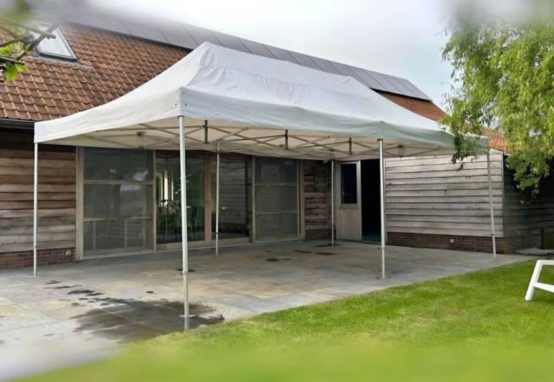 Notre tonnelles beige de 4,5x3m est idéal pour installer votre bbq en-dessous